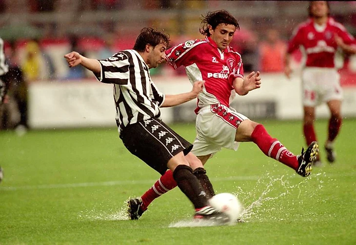Здесь уже сюрприз. Казалось бы "зебры" любимчики фортуны. Были моменты в их истории когда казалось, что футбольный Бог явно носит черно-белые цвета "старой синьоры". Но опять же сезон 1999-2000 стоит особняком. В начале апреля туринцы имели 9-ти очковый отрыв от ближайшего преследователя римского "Лацио" и казалось, что команда Карло Анчелотти своего не упустит. Но видимо "купаясь" в предвкушении собственного успеха, игроки "Юве" были ментально в отпуске и ждали 34-го тура на вершине Серии А, как само собой разумеющееся. К последнему игровому дню туринцы имели гандикап всего лишь в 2 очка над римлянами. "Зебры" поехали в Перуджу играть против местной команды. "Лацио" же принимал дома "Реджину". "Лациале" уверенно выиграли 3-0 и ждали положительных новостей из самого центра Апеннинского полуострова. Карло Анчелотти до сих пор может вспоминать 14 мая 2000 года также плохо, как и 25 мая 2005 года (день "Стамбульского финала"). Шел сильнейший ливень и матч был под угрозой срыва, но ввиду того, что это был последний тур и играл лидер чемпионата, переносить 8 параллельных встреч из-за одного поединка было проблематично. "Юве" пришлось отказаться от атакующего рисунка игры ввиду непреодолимых обстоятельств. И как результат "Перуджа" была успешнее в водном поло и Дмитрий Аленичев, арендованный тогда у "Ромы" помог главным конкурентам "джаллоросси" стать чемпионами во второй раз в их истории. Итоговый счет 0-1 не в пользу туринцев.
