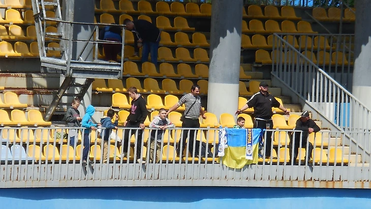 Фан-сектор «Говерлы» подтянется чуть позже. Девять человек, из которых семь – дети. «Ультрас» иногда что-то кричали – порой даже «акаб, акаб» (зачем?). В остальном же фан-сектор «Говерлы» показался довольно неактивным. Впрочем, это неудивительно - реальный фан-сектор ещё год назад поругался с владельцами команды и отказался от поддержки, переключившись на любительский ФК "Ужгород".
