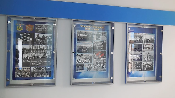 Здесь, кажется, до сих пор пахнет ремонтом. Повсюду стоят стенды с историей ужгородского футбола – «Русь» (ещё чехословацкая!), «Спартак», «Закарпатье» и, наконец, «Говерла». Ужгородский клуб отпраздновал 90-летие в прошлом году – он старше «Шахтёра» и «Динамо».