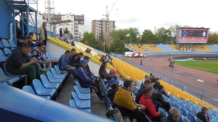 Фасад стадиона явно недавно ремонтировался. Свежая краска, новенькая эмблема «Говерлы». Словом, всё располагало к прекрасному просмотру футбола. Я подхожу к кассам и интересуюсь ценником. В отличие от луцкого «Авангарда», ужгородский «Авангард» предлагает билеты различной ценовой категории – от 15 до 45 гривен.