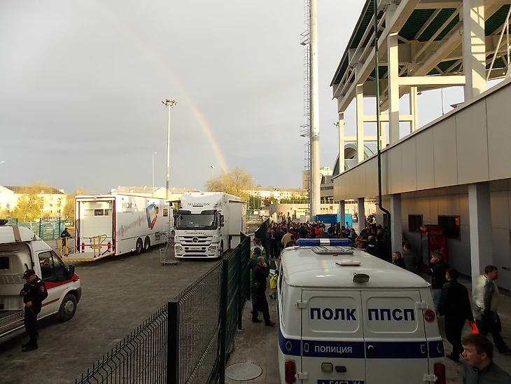 Так что, автомобильный и людской траффик в районе "СКБ-Банк Арены" ближе к 19:00 ожидаемо стал напряженным.