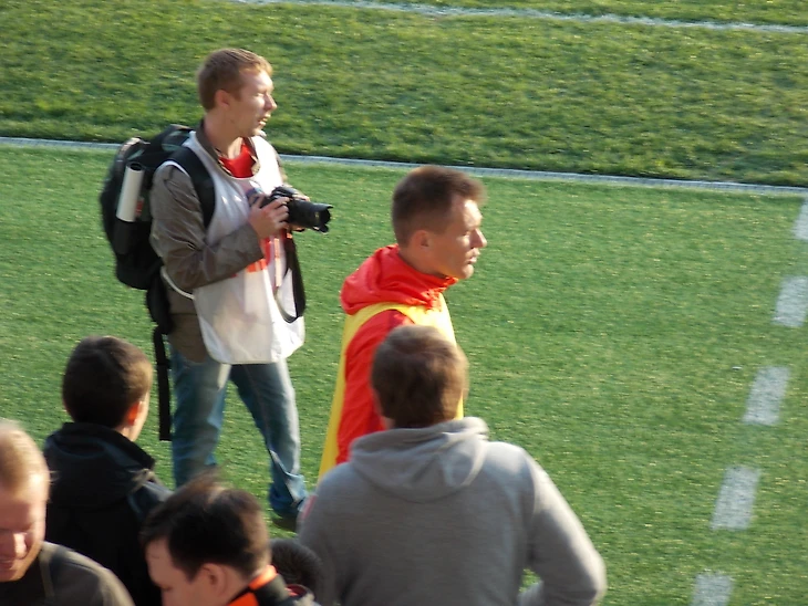 В ожидании стартового свистка Сергея Иванова большинство фотокорреспондентов направились за ворота Николая Заболотного...