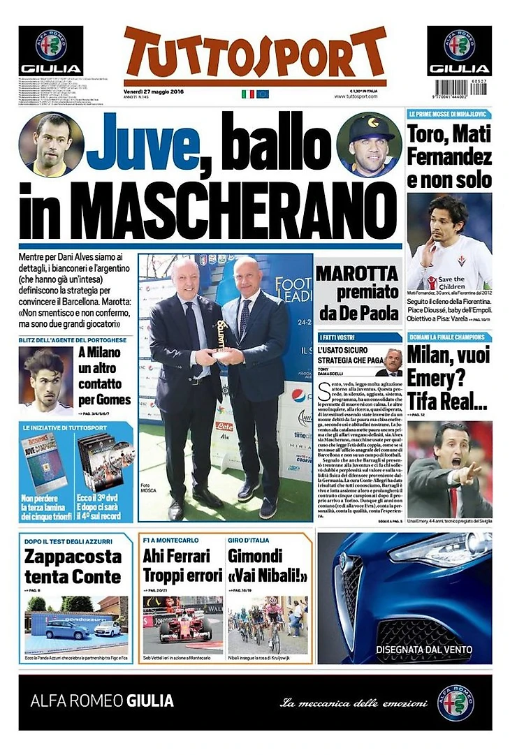 Пока по Дани Алвесу уточняются детали, Бьянконери и аргентинец (с которым уже достигнуто согласие) определяют стратегию для того, чтобы убедить «Барселону». Маротта: «Не отрицаю и не подтверждаю, но они два отличных игрока».