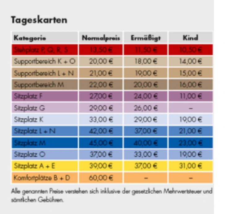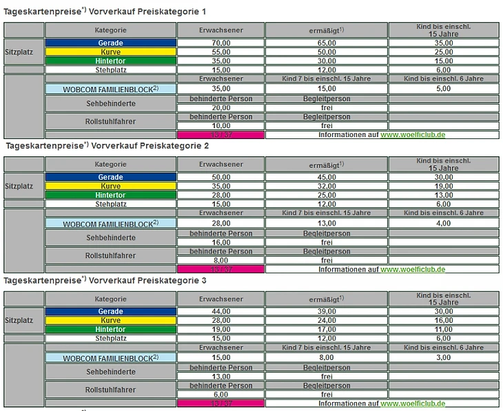 Билеты без места стоили в этом сезоне у «волков» по 15 евро, а вот билеты на сидячие места обходились их владельцам от 19 до 70 евро. Кроме того, в Вольфсбурге было много различных предложений для семейных походов на футбол и скидки для детей младше 15 лет. Ну и само собой различные варианты для людей с ограниченными возможностями, что становится доброй традицией практически для всех стадионов Германии.