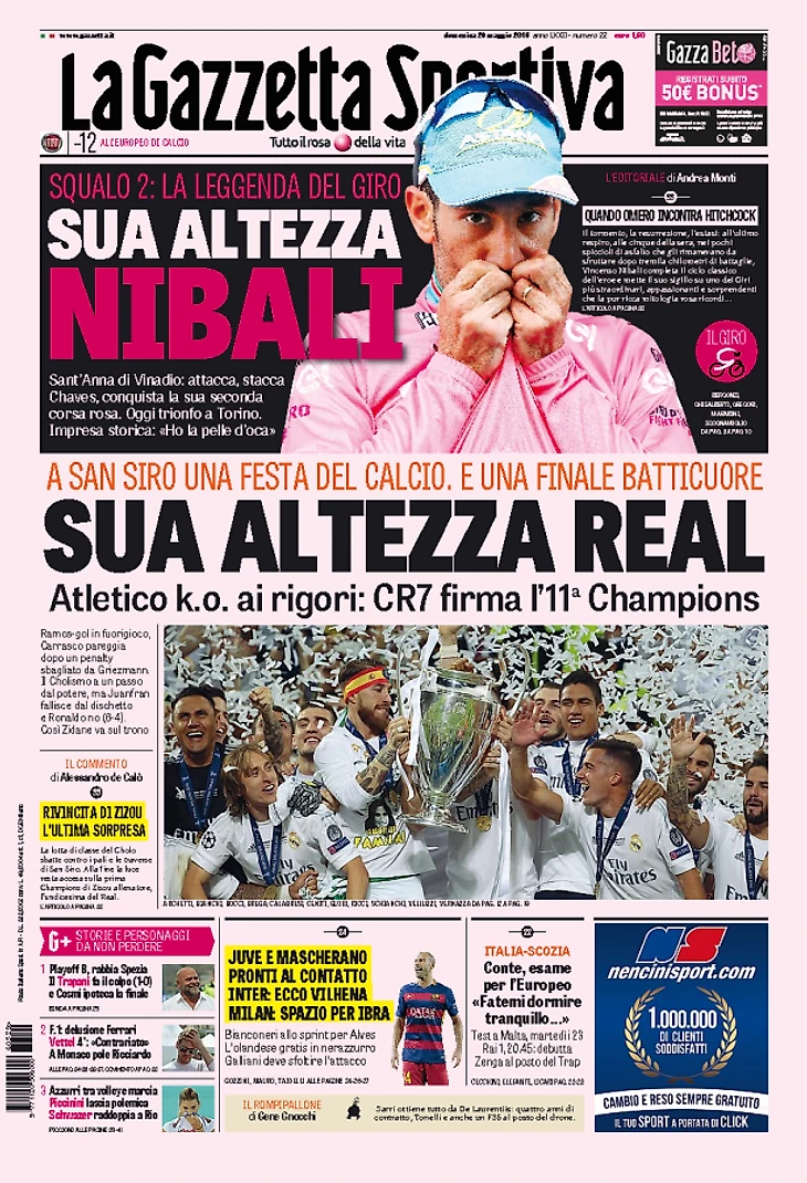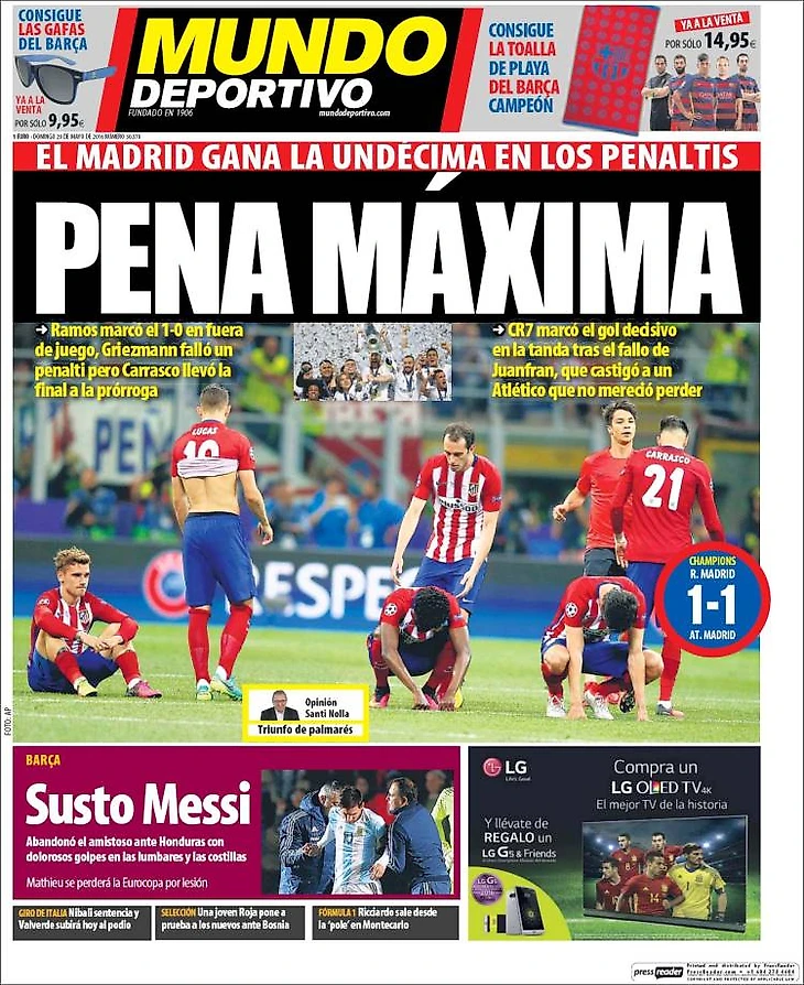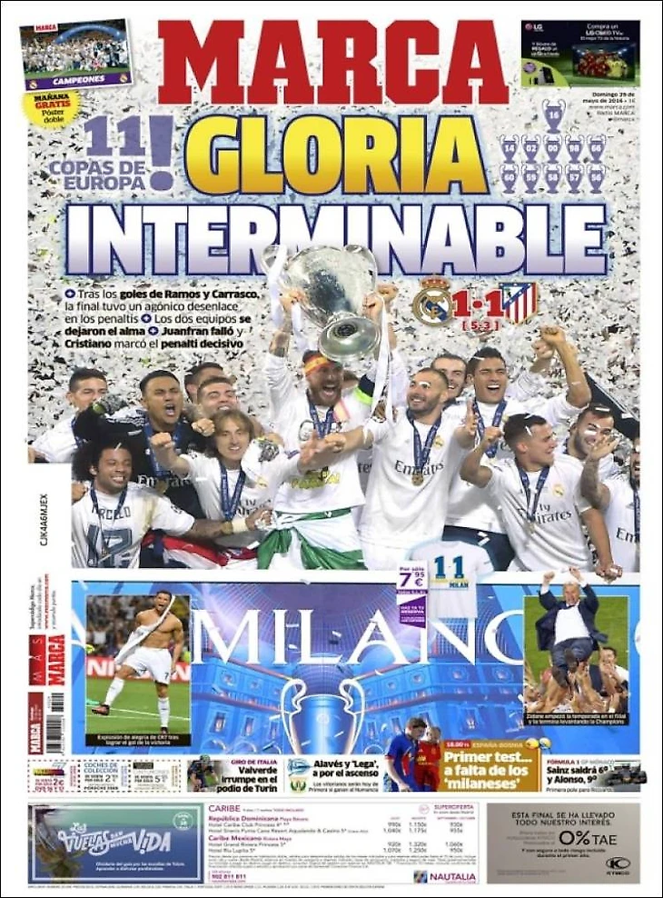 у Марки на обложке - Мадрид, у Эль Мундо Депортиво - Атлетико, у португальцев - Роналду, у французов - Зидан...в общем англичане могли бы тиснуть на главную Клаттенбурга )