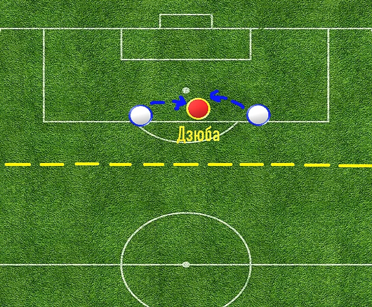 Конечно, от Дзюбы не отлетает (как свояк в бильярде), как может показаться на схеме, хотя и такле бывает ;)