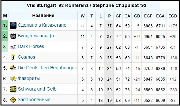 Наша команда заняла 1 место в дивизионе VfB Stuttgart '92 Konferenz / Stephane Chapuisat '92 (11+/4=/7-) и попала в плей-офф.