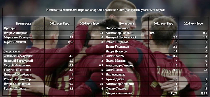 Игроков стоимостью 20+ млн в составе нет, что говорит о более ровной оценке игроков. За пять лет наибольший скачек в стоимости сделали игроки Зенита Игорь Смольников и Олег Шатов.
