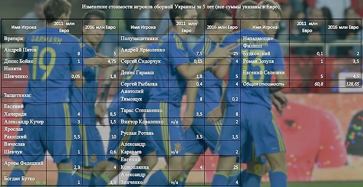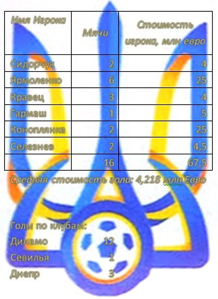 Таблица показывает, что игроки Шахтера и вовсе не отличались. Но стоит признать, что Шахтер был обычно представлен игроками оборонительно плана, а Динамо, в свою очередь, составляет основу нападения. Забив 16 мячей за отборочный цикл, Украина пропустила 5 (вместе с играми плей-офф). Разница составила +11. Для примера сборная Словакии, занявшая второе место, пропустила 8 мячей, забив 17. Но сыграла на два матча меньше Украинской.