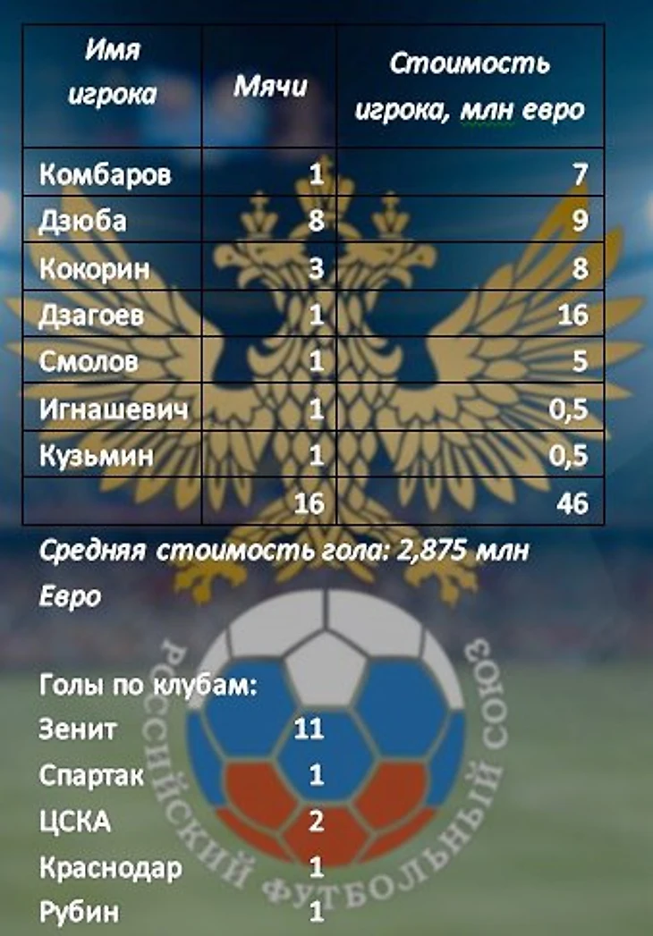 Если немного откатиться к отборочному циклу на Евро, то увидим, что именно игроки Динамо являются самыми полезными для сборной с точки зрения забитых мячей: