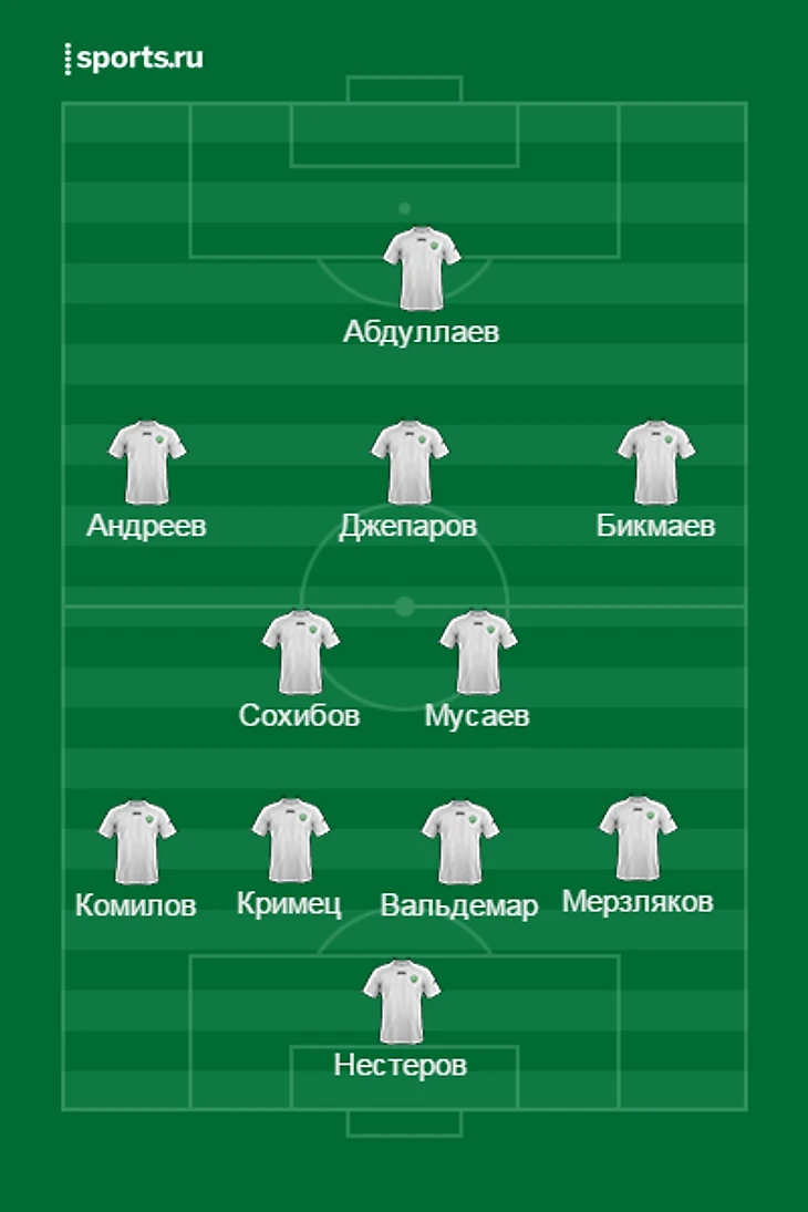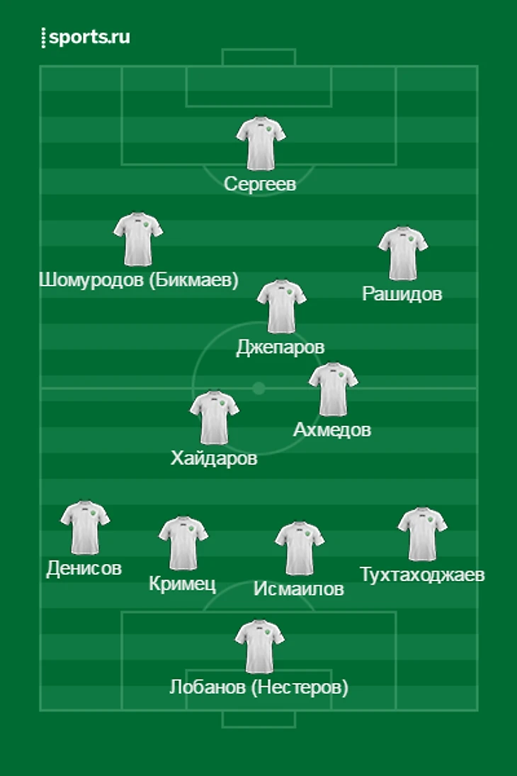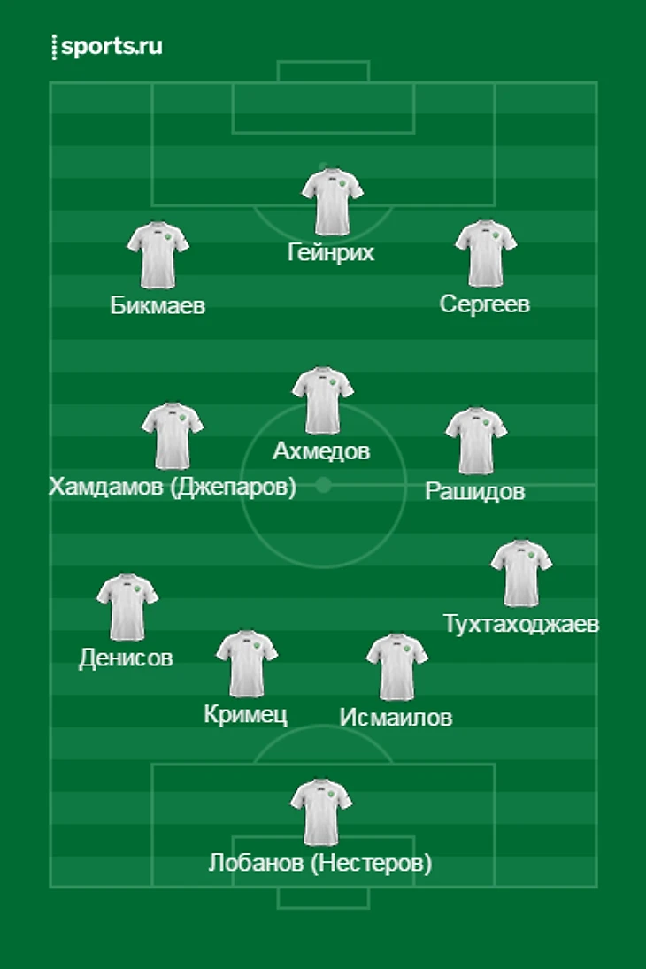 Самое невероятное сочетание стартового состава. Идеальный вариант дать поиграть футболистам, получающие недостаточное количество игрового времени (это, если Узбекистан заранее обеспечит выход из группы). В атаке будет действовать Зохид Абдуллаев из «Металлурга», форвард, отлично себя проявляющий в нынешнем чемпионате, но рискующем лишь стать копией Бахриддина Вахобова, который не совсем подходит под игровые схемы тренерского штаба сборной. На флангах – в качестве альтернативы можно предложить кандидатуры Хамдамова и Шомуродова, а в атаке Тимурходжа Абдухаликова. Уникальная возможность себя показать перед скаутами европейских клубов. Правда, или нет,  Хамдамовым интересуется один из клубов Серии А, который давно следит за его международными выступлениями.