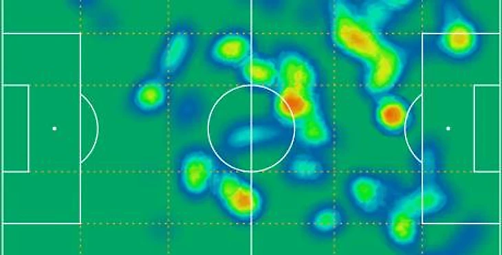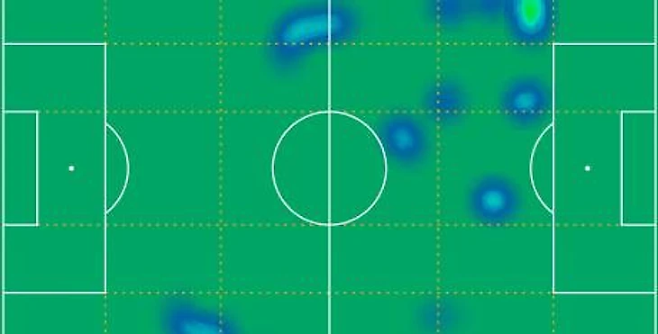 После той встречи на орехи досталось Антуану Гризманну, который совсем недавно со своим клубом доходил до финала Лиги чемпионов, а первый матч провёл ниже ожиданий. Настолько ниже, что общественность тут же начала прикидывать, а кем бы заменить Антуана. Более того, вчерашний выпуск L’Equipe вышел под заголовком «Беспокойство за Гризманна», как бы намекая на его разочаровывающий матч. Так ли плохо он сыграл? 22 раза коснулся мяча за 68 минут, столько же сколько и Юго Льорис за весь матч, однако у него единственного отрицательный показатель продвижения мяча по полю. Если у Антони Марсьяля продвижение с мячом в среднем составляло 6 метров, то у Гризманна -0,93 (!) метра. Говоря проще, одна из звёзд испанской Примеры совсем не могла продвинуться с мячом самостоятельно в сторону чужой штрафной. В чём же дело? Румыны просто заперли Антуана на замок. Об этом свидетельствует тепловая карта: