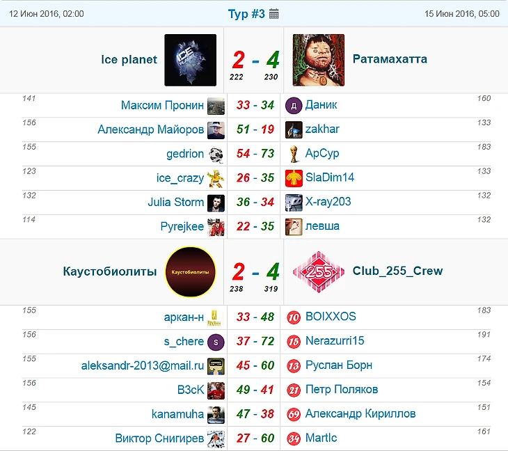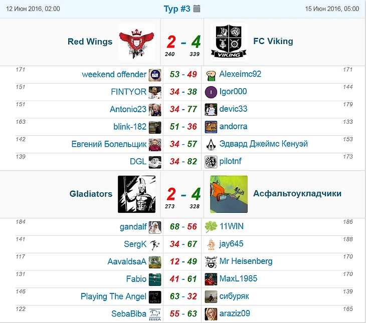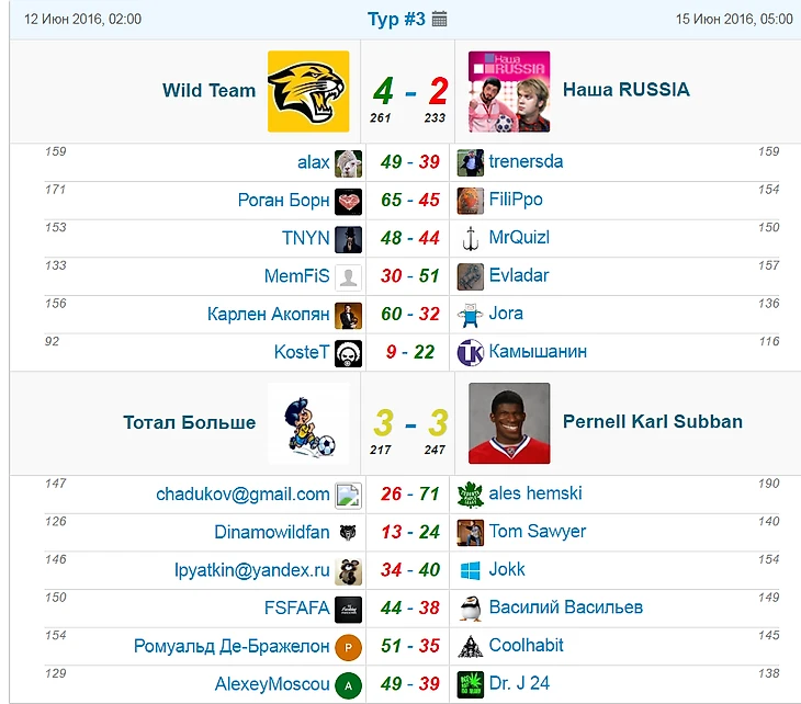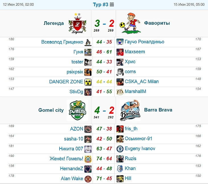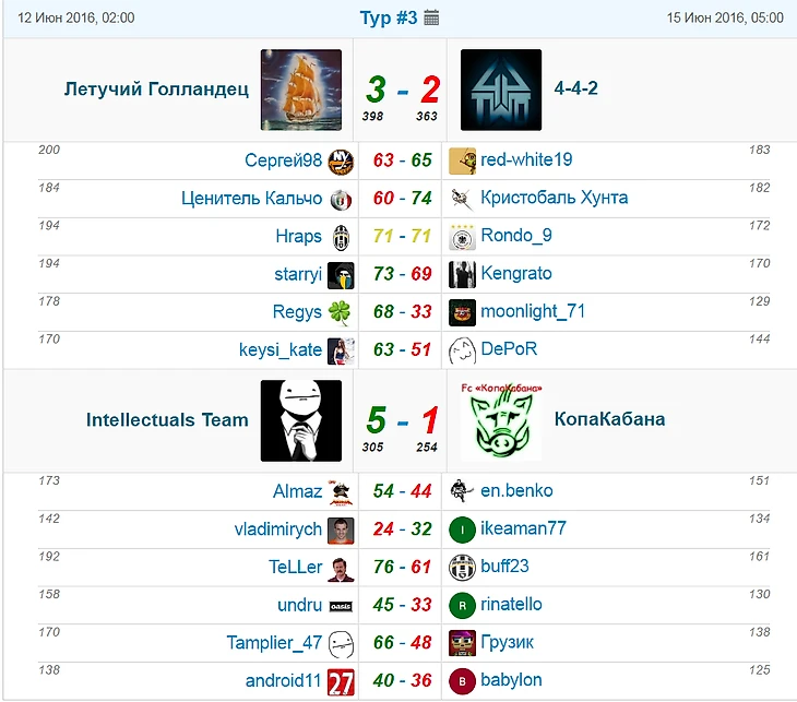 Командный fantasy Н2Н-турнир. Кубок Америки. Итоги 3 тура