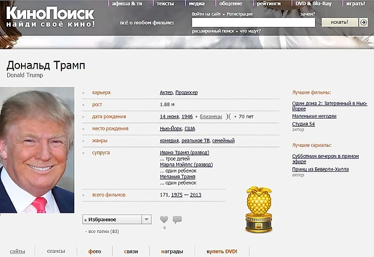 Кстати это не единственный фильм, в котором "засветилось" имя возможного будущего президента США. В фильмографии Дональда Трампа более ста (!) фильмов и сериалов, где он либо играет самого себя, либо появляется в кадре в качестве камео. Самые яркие эпизодические роли Трампа – в фильмах "Один дома-2: Затерянный в Нью-Йорке", "Секс в большом городе", "Образцовый самец".