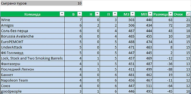 Команда Wine выбилась в лидеры, первой одержав 7 побед(половину от всех туров гладкого чемпионата), вместе с командой Amigos, первыми выбили 500+ очков!