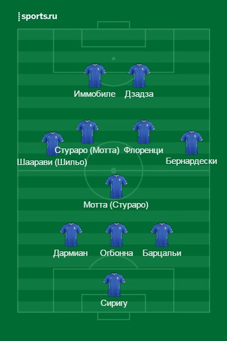 Несмотря на товарищеский характер грядущего матча для итальянцев, с.t. сохранит модуль 3-5-2 даже для эксперементального состава, выпустив Маттео Дармиана на позицию левого центрального защитника. Единственное глубоко тактическое изменение может быть только на позиции опорного полузащитника: если там будет играть Стураро, то позицию левого медзалы займёт Тьяго Мотта, и наоборот, что повлияет на количество вертикальных обостряющих передач из глубины поля.