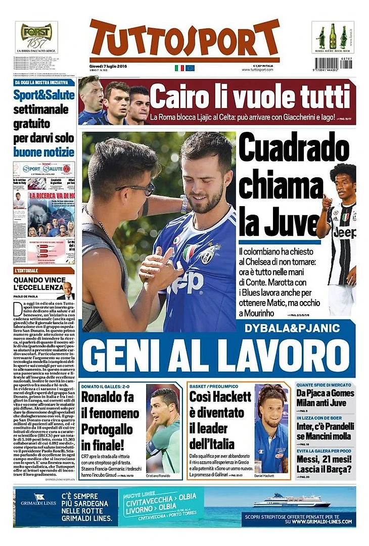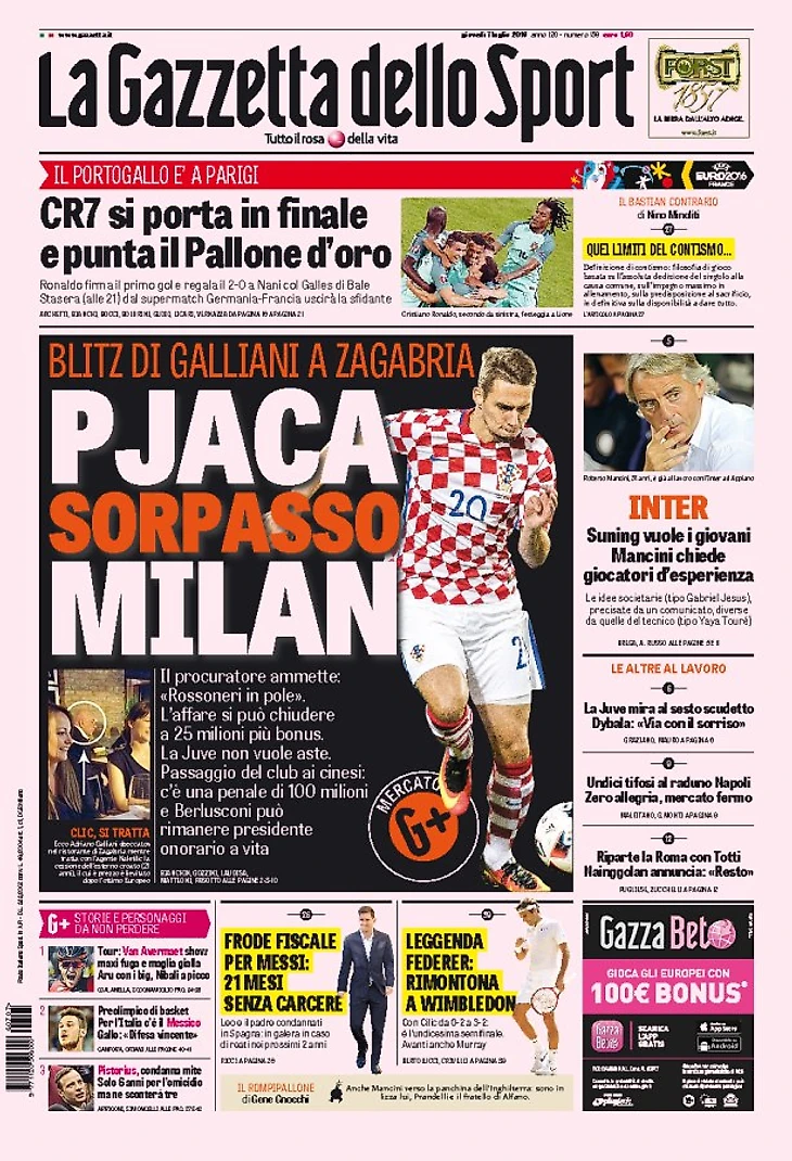 «Пьяца, обгон «Милана». Заголовки Gazzetta, TuttoSport и Corriere за 7 июля