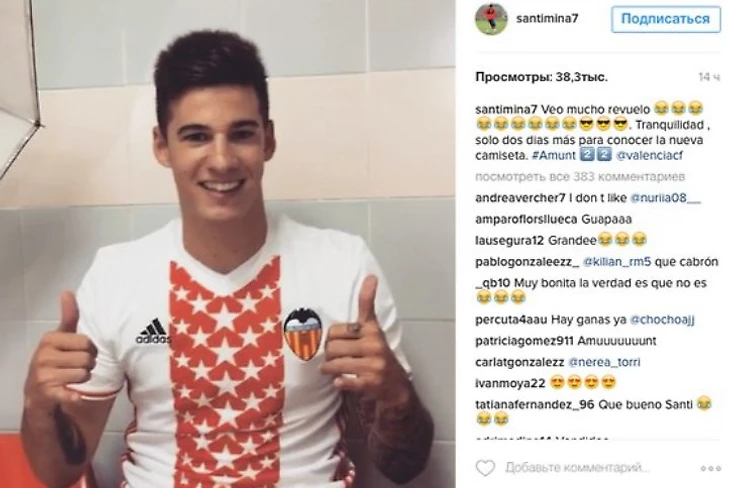Что же подумали фанаты Валенсии? Что Санти, находящийся на фотосессии посвященной новой форме "летучих мышей", по неосмотрительности решил сделать селфи и поделиться им со своими подписчиками. Кроме того, их теорию подтвердили и действия как самого Мины, так и Валенсии. Клуб на своем официальном сайте не оставил никаких новостей по поводу презентации новой формы, а Мина, примерно через 10-15 минут после размещения фото, увидев, что болельщики команды активно реагируют и высказывают свое мнение (в основном негативное) по поводу довольно странного дизайна формы в соц.сетях, решил удалить данный пост. Таким образом, он окончательно подкрепил версию тех, кто считал, что нападающий по случайности просто-напросто "спалил" новую клубную форму. Фанаты начали активно негодовать по поводу дизайна майки на просторах интернета. Что же произошло в итоге?