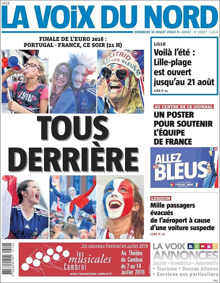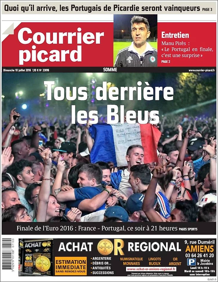 3. Courrier Picard "tous derriere les Bleus" - в данном случае смысловой перевод "Все за Синих!"