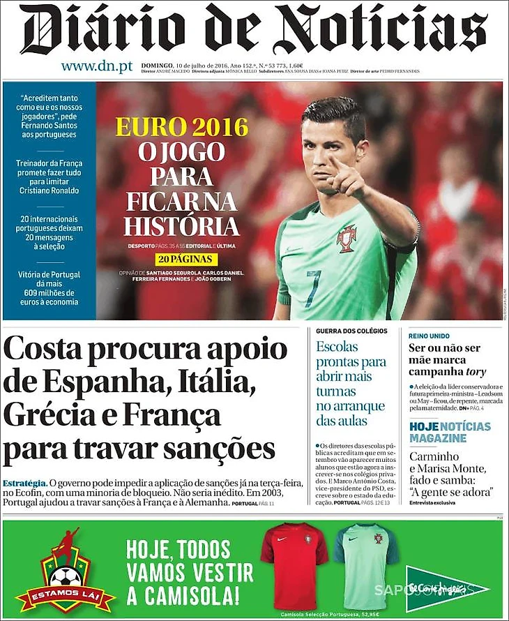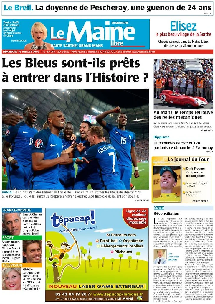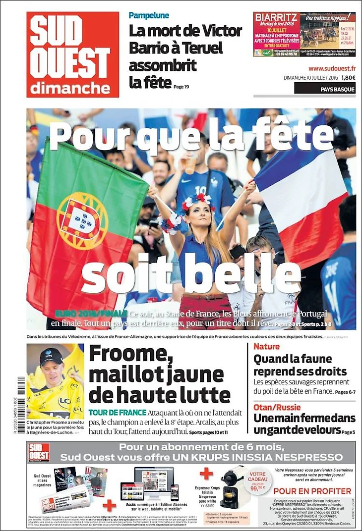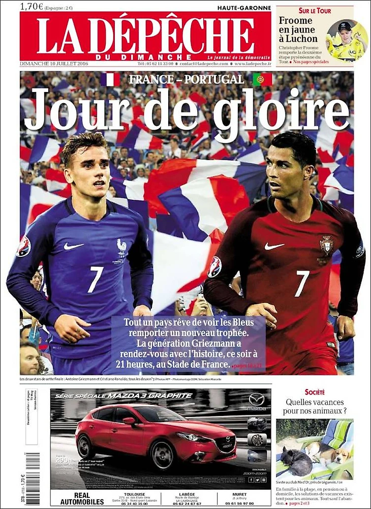 Обложки французских и португальских газет перед решающей битвой Евро.