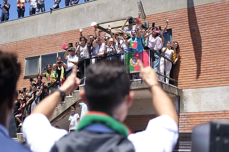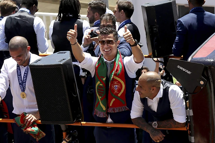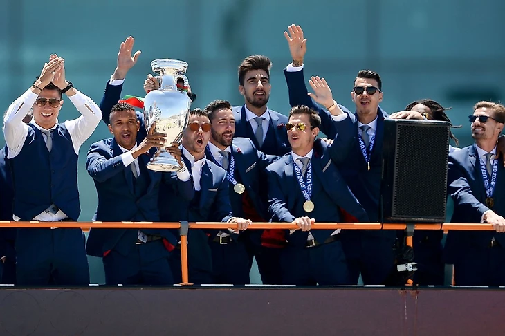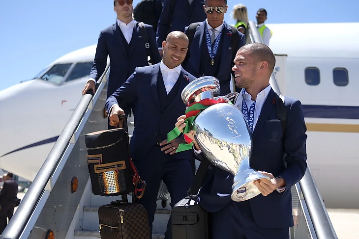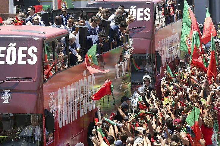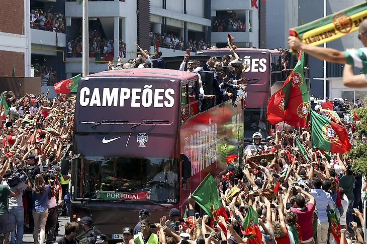 По прилёту в Лиссабон, футболисты Португалии сели в открытый автобус и проехались по улицам города. Затем чемпионы Европы встретились с президентом Португалии Марселу Ребелу ди Созой.