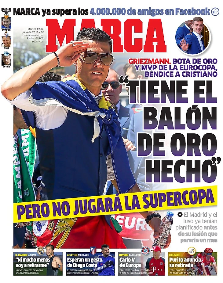 Испанская Marca приводит слова Антуана Гризманна о том, что вопрос о будущем обладателе Золотого мяча уже решён. Им станет Криштиану Роналду.