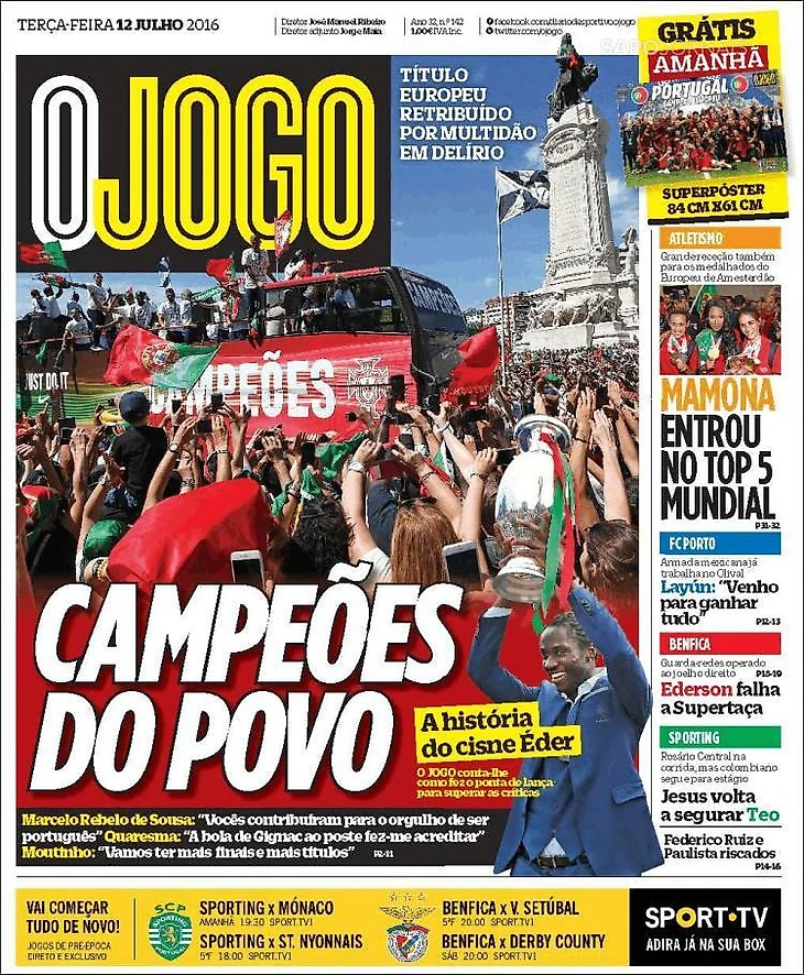 A Bola пишет на главной странице: "Герои в море людей. Этого дня Португалия ждала всю жизнь".