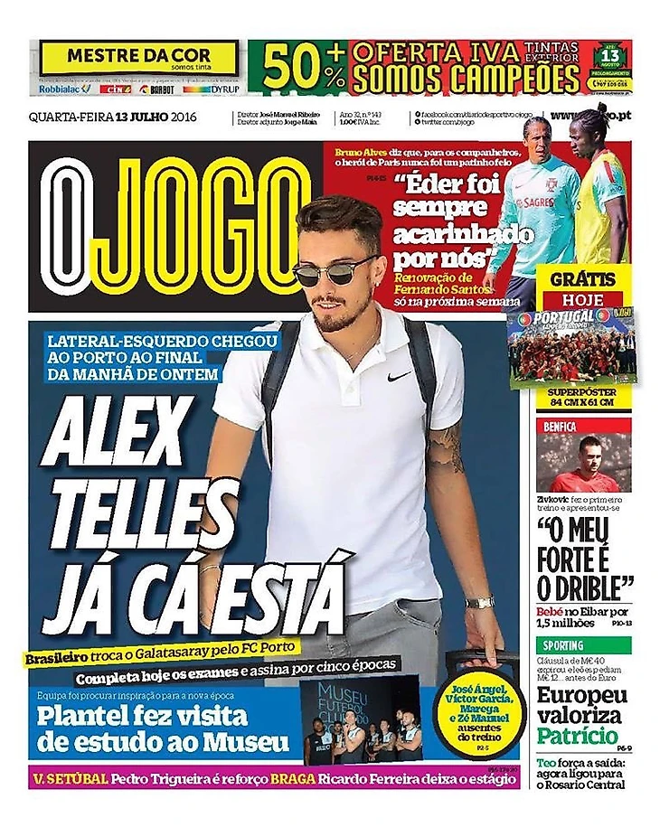 O Jogo встречает бразильского футболиста Алекса Теллеса, перешедшего из "Галатасарая" в "Порту".