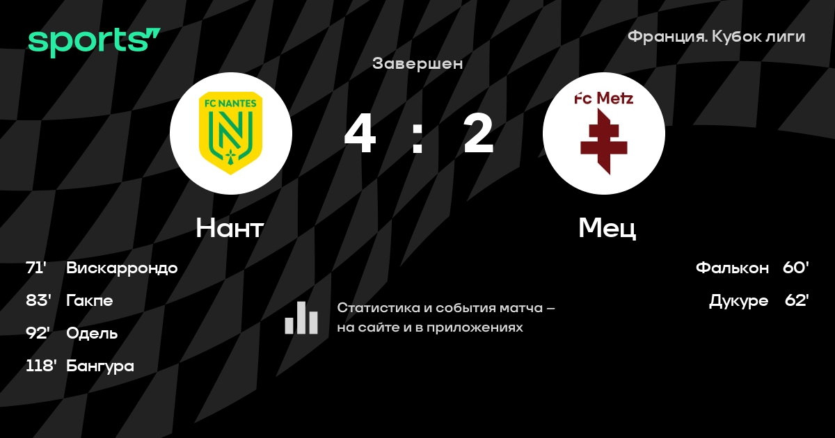 Мфа-Мезуи - Ривьере, Паломино, Сарр, Шоплен, Буссманн - Дукуре, Лежен, Каши - Фалькон, НгбакотоЗапасные: Оберозер, Метанир, Вьон, Кривец, Малуда, Андрада