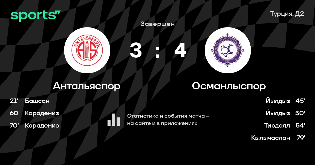 Шахин - Соро, Чюрюксу, Озер, Байыр - Шерас, Реис, Тисделл, Башдаг - Йылдыз, УмарЗапасные: Джанбазоглу, Кесим, Качар, Гюзель, Кылычаслан, Деликташ, Найир