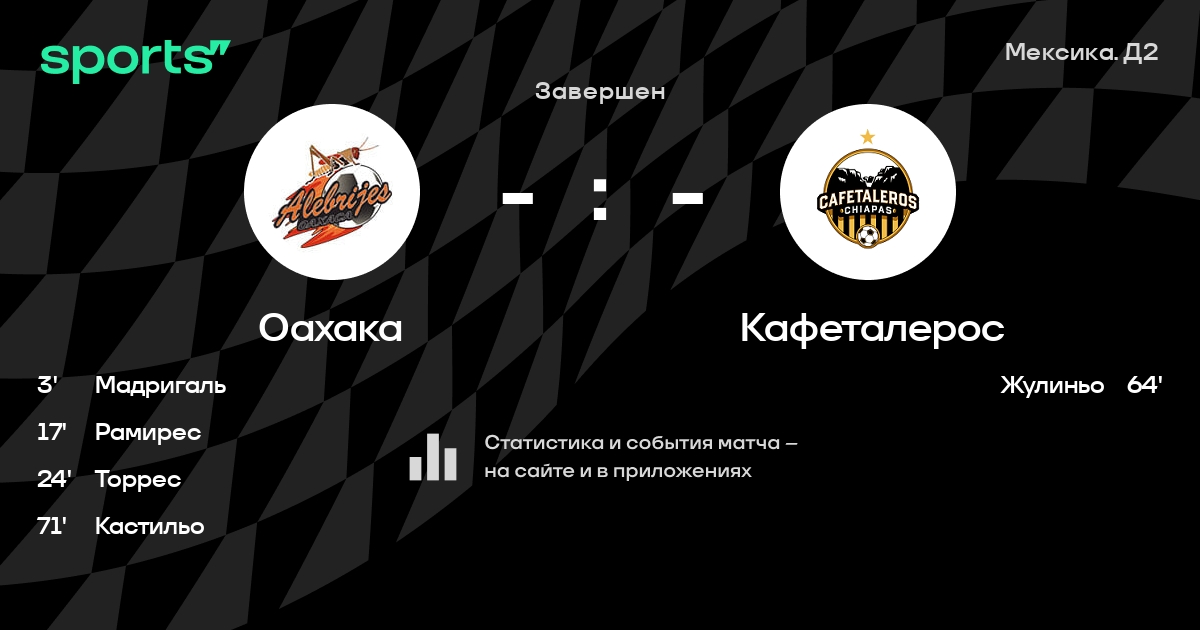 Muñóz Vidrio - Гонсалес, Санчес - Веласкес, Родригес, Палафокс, Эррера, Cuevas Maldonado, Варгас - Сифуэнтес, ФернандесЗапасные: Ромо, García Carvajal, Чарлес, Жулиньо, Сатарайн, Sayún Pallares, Тапия
