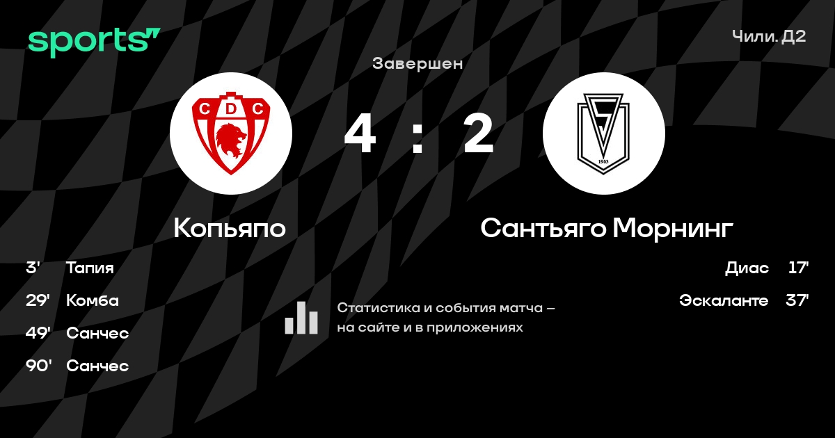 Burgos Gallardo - Вильегас, Валенсия, Portillo, Ромо - Muñoz Ardiles, Кортес, Тапия, Munizaga Maturana - Санчес, КомбаЗапасные: Hartard Ojeda, Osorio Alfaro, Пиньонес, Albornoz Figueroa, Соса, Pavez