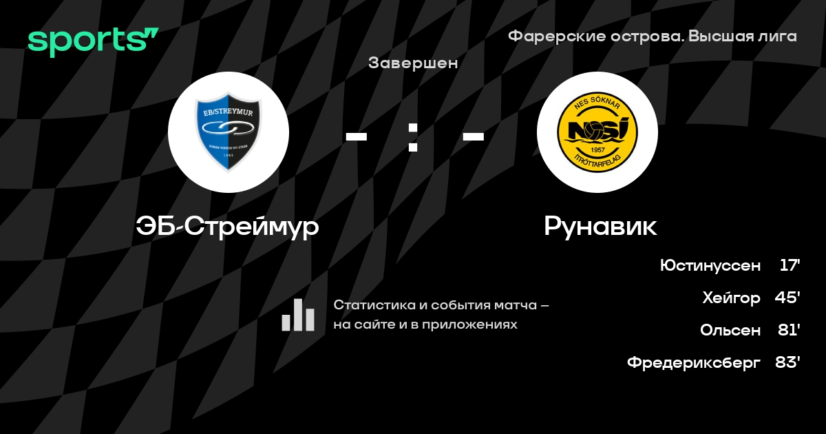 Хейгор - Ольсен, Юрхус, Ольсен - Дам, Даниэльсен, Нильсен, Ольсен, Хансен, Ольсен - ЙенсенЗапасные: , Даниэльсен, Poulsen, Á Høgaryggi, Магнуссен, Никласен