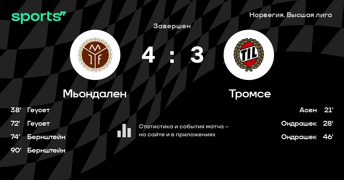 Форн - Солберг, Бернштейн, Арнеберг, Ульсен - Хансен, Осмундсен, Гундерсен, Стильсон - Геусет, КапиджичЗапасные: Хошулд, Мон-Ришовд, Странге, Скагестад, Диоп, Соссе, Нильсен