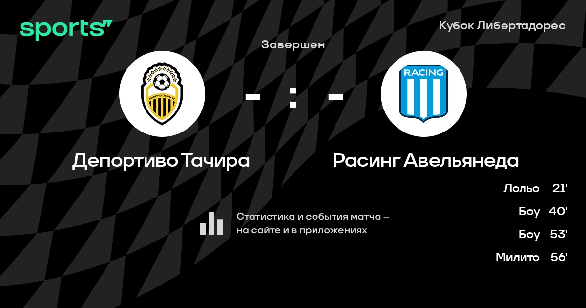 Депортиво Тачира – Расинг Авельянеда: коэффициенты