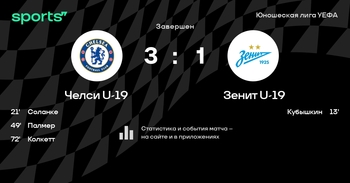 Юношеская Лига чемпионов. 1/8 финала. «Зенит» в гостях уступил «Челси» и другие результаты
