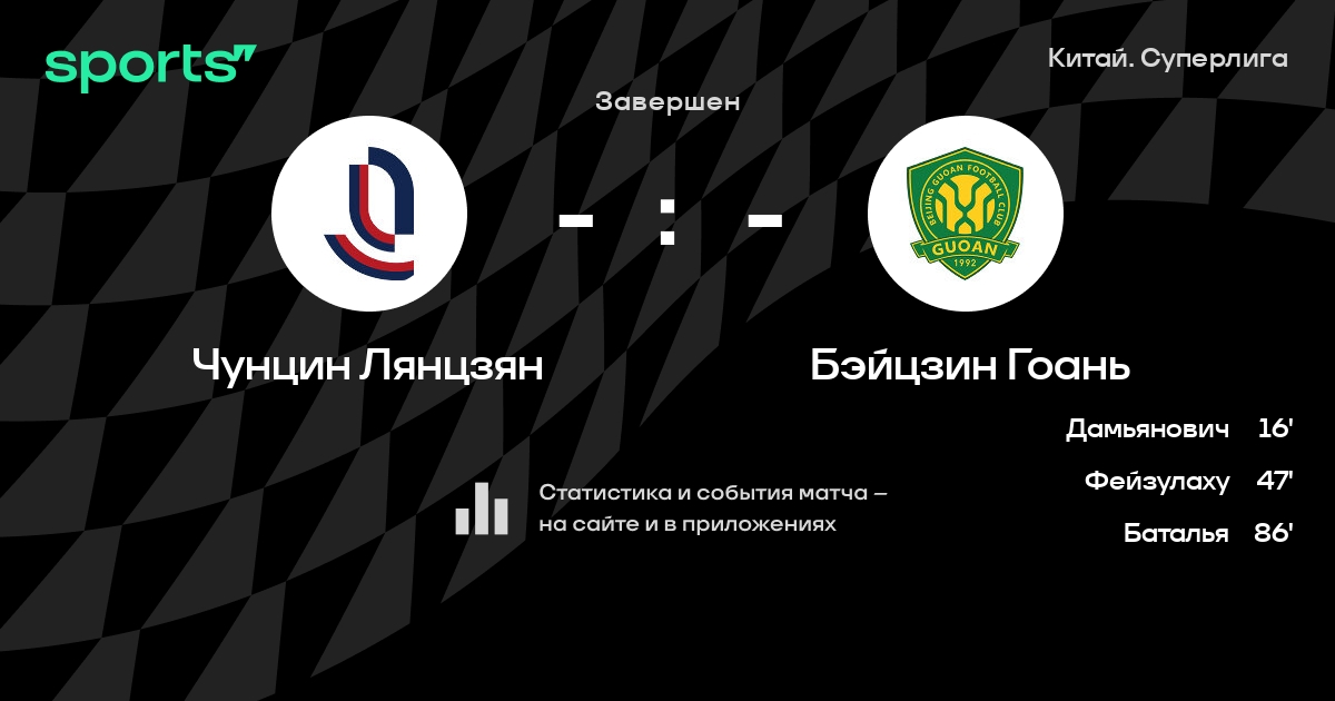 Ян Чжи - Чжао Хэцзин, Лэй Тэнлун, Лан Чжэн, Ли Юньцю - Чжан Чэндун, Пяо Чэн, Матич, Юй Дабао - Фейзулаху, ДамьяновичЗапасные: Ши Сяотянь, Чжоу Тин, Сун Босюань, Чэнь Чжичжао, Чжан Сяобинь