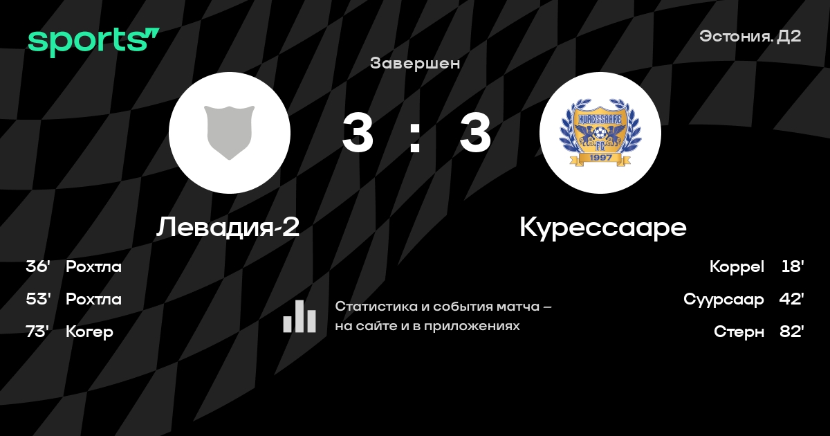 | 5 | Нымме Калью-2 | 36 | 14 | 4 | 18 | 50 | 56 | -6 | 46 | ||