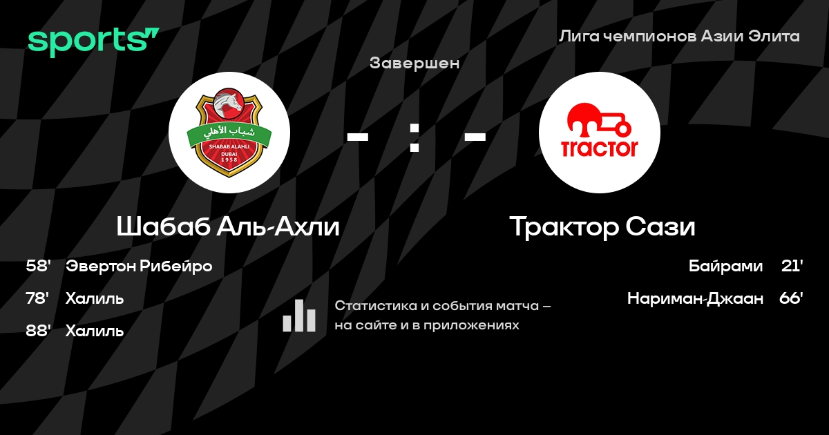 Шабаб Аль-Ахли – Трактор Сази: коэффициенты