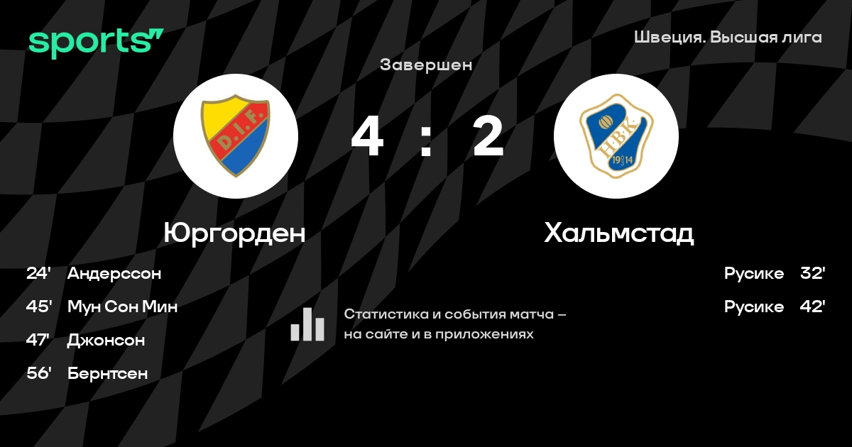 | 4 | Эльфсборг | 30 | 16 | 7 | 7 | 59 | 42 | +17 | 55 | ||