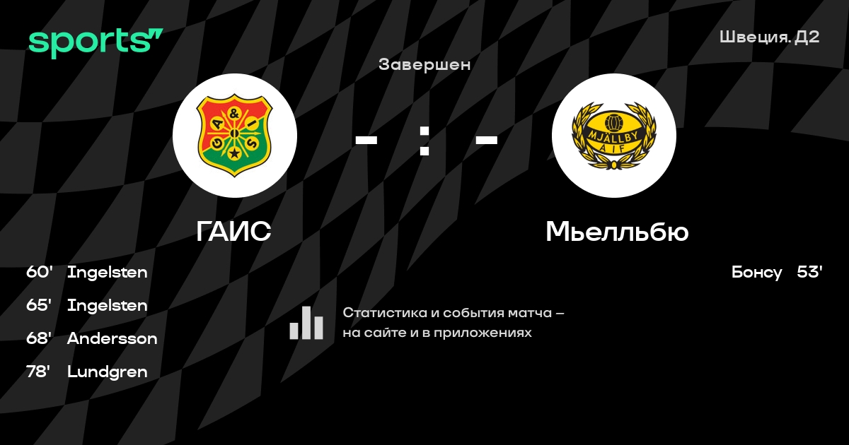Вайхо - Mankoo, Andersson, Моэнза - Айярна, Жуби, Lundgren, Бергссон, Svensson - Кэдоган, IngelstenЗапасные: Berglöf, Eliasson, Djurovic, Johansson, Eriksson, Krasniqi, Maraisane