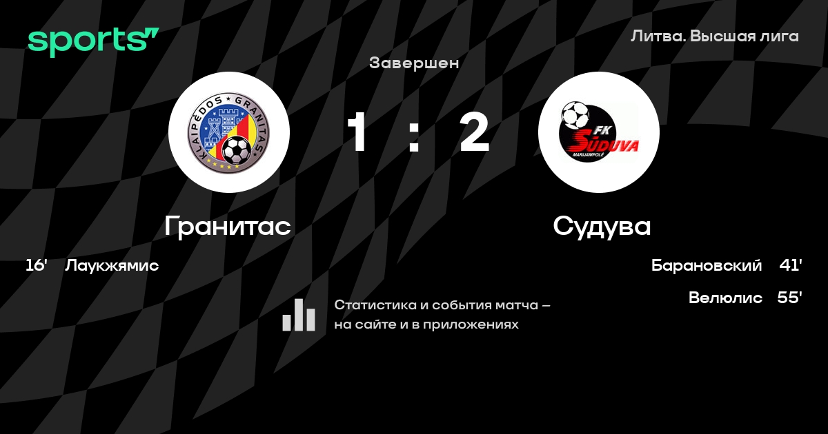 Гранитас – Судува: коэффициенты