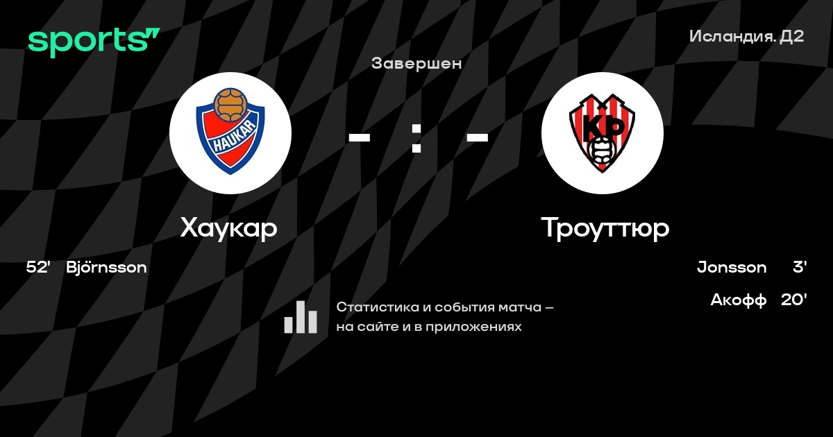 Sigurbjornsson - Акофф, Ásbjörnsson, Björnsson, Hauksson, Björnsson, Hallsson, Green - Харальдссон, Pétursson - JónssonЗапасные: Stefnisson, Jakobsson, Grétarsson, Thorarinsson, Pálmason, Корома, Ástþórsson