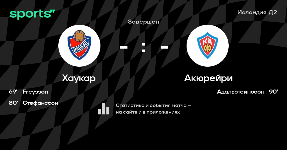 Дитерих - Sindrason, Guðmundsson, Gudmnudsson, Nganpanya, Gudlaugsson - Freysson, Krickic, Johannsson - Adalgeirsson, СтефанссонЗапасные: Gunnarsson, Tryggvason, Jónsson, Ásgeirsson, Stefánsson, Árelíusson, Johns