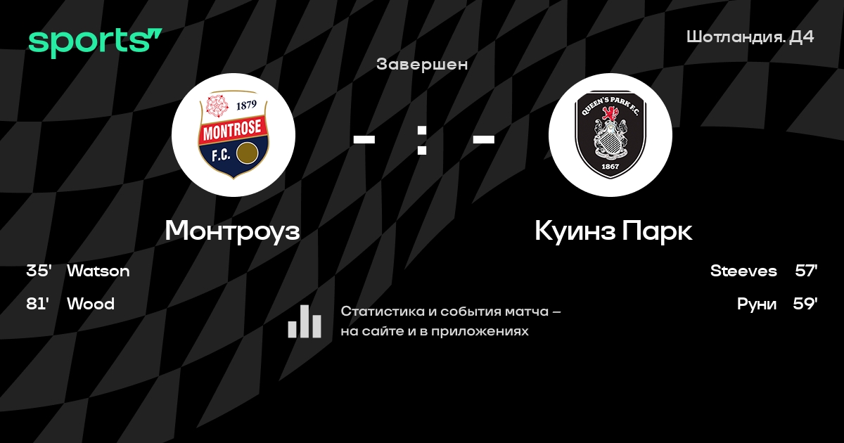 McKenzie - Аллан, Crawford, Эндрюс, Steeves - Watson, Masson, Cameron - Campbell, Johnston, WoodЗапасные: McCafferty, Graham, Moyes, Banjo, O’Neill, Johnstone, Milne