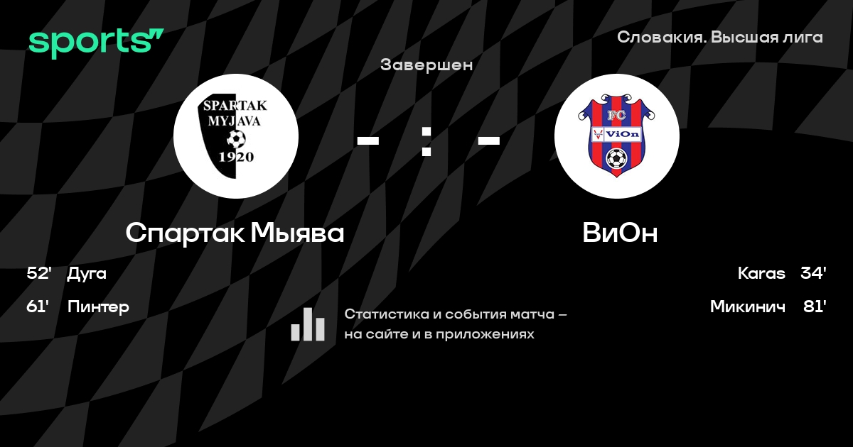 Спартак Мыява – ВиОн: Спартак Мыява не проигрывает в 5 из 7 последних матчей против этого соперника в турнире «Словакия. Высшая лига»