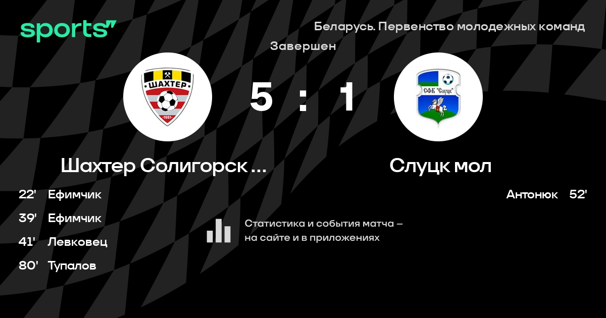 Шахтер Солигорск мол – Слуцк мол: коэффициенты