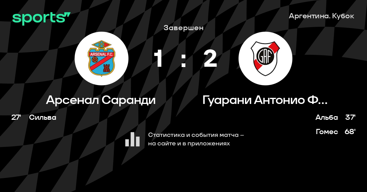 Арсенал Саранди - Гуарани Антонио Франко: положение в турнире
