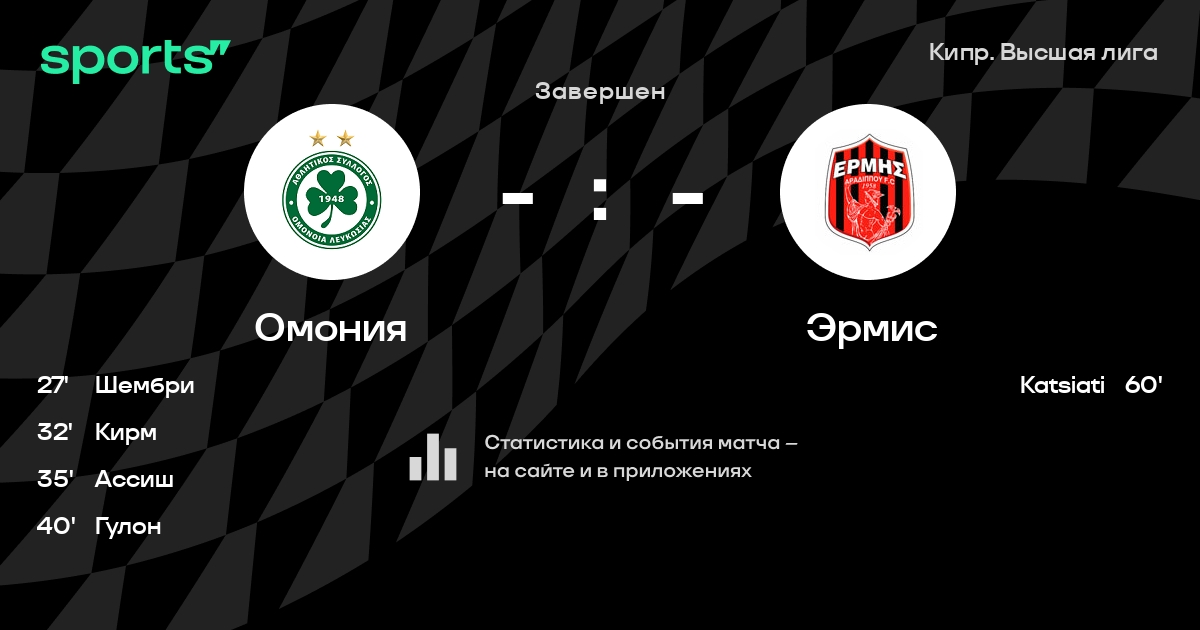 Панаги - Гулон, Леандро, Рунье - Криштовау, Маргаса, Кирм, Икономидис, Ассиш, Фофана - ШембриЗапасные: Георгаллидис, Панайоту, Деметриу, Кирьяку, Лобжанидзе, Кономис, Филакту, Рушиас, Гарсия Кабельо, Поте, Рубио
