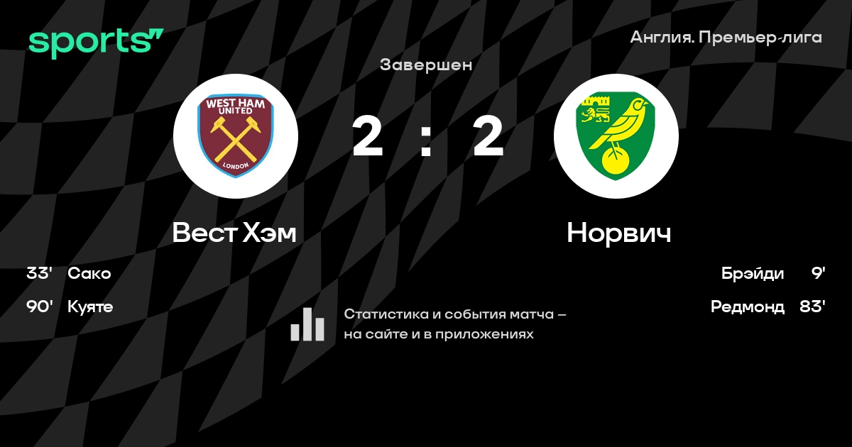 Адриан - Крессуэлл, Рид, Томкинс, Дженкинсон - Куяте, Нобл, Мозес, Пайет, Лансини - СакоЗапасные: Рэндолф, Коллинз, Обианг, Антонио, Кэрролл, Сарате